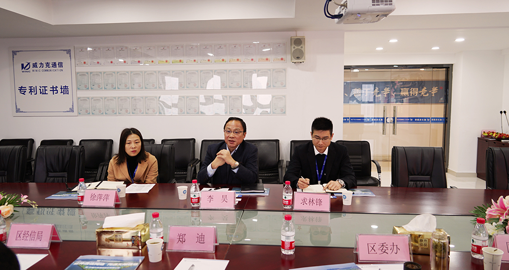 公司董事长李昊接待并陪同调研。座谈会上,李昊董事长向郑常委等领导详细汇报了威力克通信的发展经营情况,介绍了公司在产品开发、技术创新、行业聚焦、市场开拓的进展,并且对公司未来5G通信产业的发展规划做了汇报。